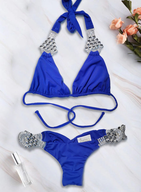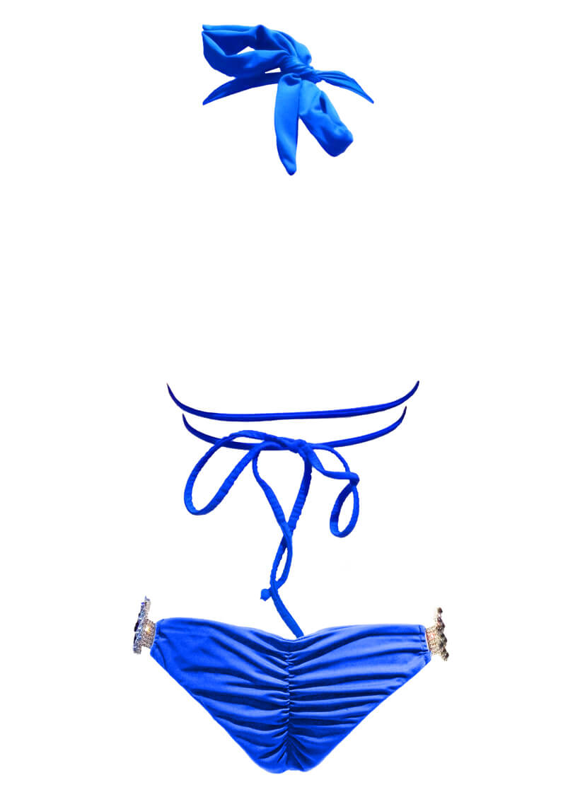 Be a Goddess in this gorgeous luxury and clam inspired jeweled blue bikini.