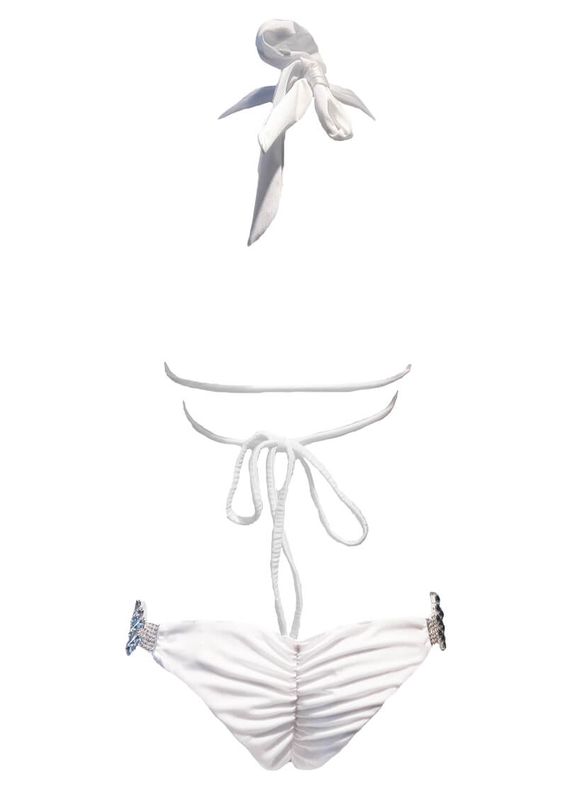 Be a Goddess in this gorgeous luxury and clam inspired jeweled white shiny bridal bikini.