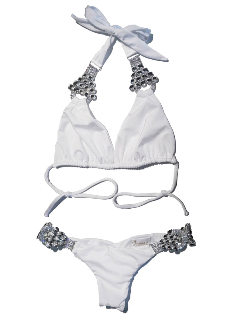 Regina’s Desire Swimwear is a luxury swimwear brand that offers high-end European-quality, crystal-encrusted ensembles that can easily make you a shining star of any pool party. Don’t be afraid to show your beautiful figure in one of our barely-there swimsuits and turn that seashore into a runway! We make all swimwears with luxury italian LYCRA fabric and with Czech and Swarovski Crystals!