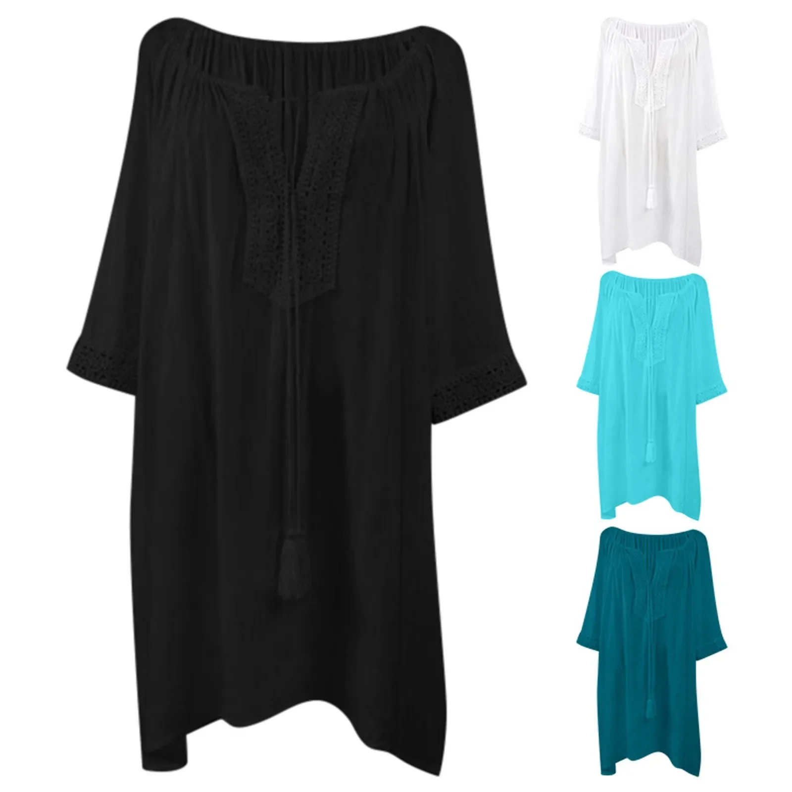 Vacation Robe Beach Cover-Up – Loose Solid Bikini Dress